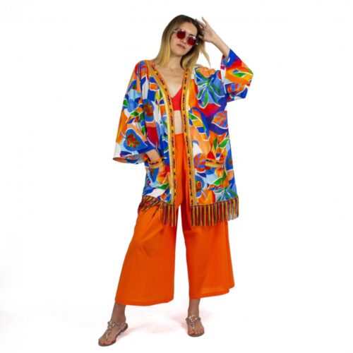 Pipe Trimmed Double Breasted Linen Blazer Jacket