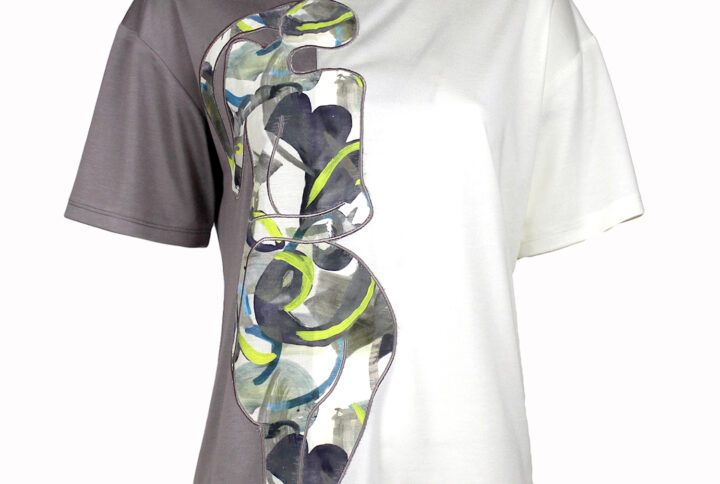Pilili bir siluete sahip olan bu etek, markamızın çağdaş estetiğini sergileyen ilgi çekici bir tasarım sunan, tamamı soyut baskıyla süslenmiştir.